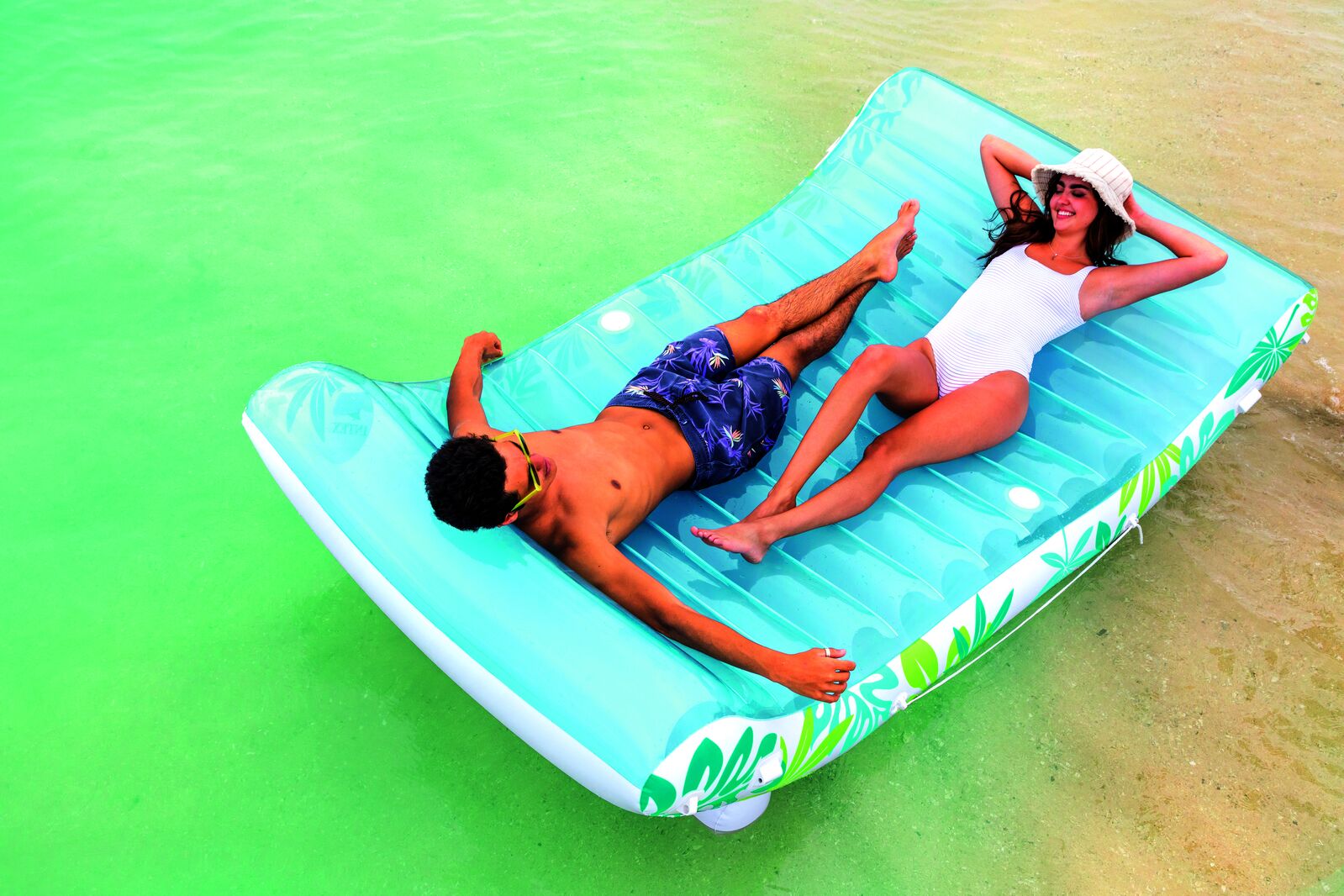Share the stylish serenity of this floating oasis. Stay cool with the canopy or easily remove it for optimal fun in the sun. As with any proper lounge, there's space to keep your drink handy.