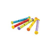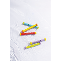 Your kids will have a great summer pool time with the Intex Underwater Play Sticks. These diving sticks stand upright at the bottom of the pool which can be easy to grab. They are made with soft flexible material for safety. It comes with 5 bright colors in one set.