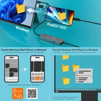 The Wormhole Switch CrossLink USB-C HUB (JCH422) enabling cross-platform collaboration between Windows and iPad/iPhone devices. Allows you to transfer files and share screen between Windows and iPad/iPhone effortlessly. Integrates a 5Gbps USB-C and a 5Gbps USB Type-A port (both ports only work with Windows host), so it’s ideal for plugging in USB devices such as a mouse, keyboard, or flash drive whenever they’re needed.This pocket-sized hub allows you to have this powerful functionality whenever you go.