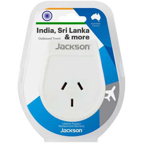 This outbound travel adaptor converts appliances with AU/NZ plugs to suit overseas power sockets. Compatible with Indian and Sri Lankan style sockets. 220-240Vac 50/60Hz. 10A max current.