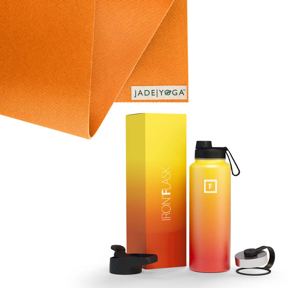 Elevate your health journey with the bundled Jade Yoga Harmony Mat and Iron Flask Wide Mouth Bottle with Spout Lid, Fire, 32oz/950ml.