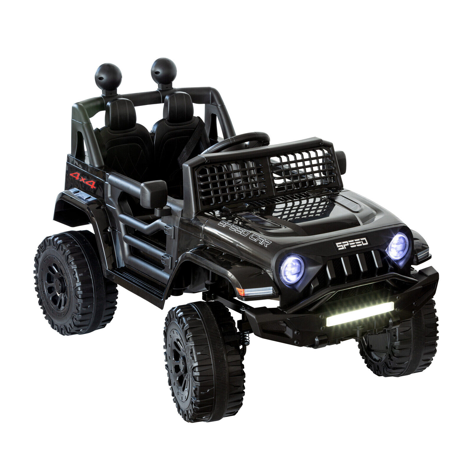 - Forwardand reverse driving controls, LED lights, power display dashboard, realistic engine, and horn sounds, a built-in music
