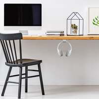 Kanto HHW Universal Under Desk Headphone Hook, White - Enjoy easy access to your headphones while reducing desktop clutter. Constructed out of steel, the HH headphone hook features a contoured silicone cradle designed to protect your headband while keeping it securely in place. High-strength 3M VHB adhesive ensures a quick and reliable installation to the underside of your desk, while optional self-tapping screws are provided for a more permanent setup. Use this low-profile headphone hanger with most on-ear and over-ear headphones weighing up to two pounds.