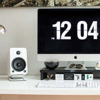 Kanto S4W Angled Desktop Speaker Stands for Midsize Speakers - Pair, White - S4 speaker stands are the perfect addition to your desktop speaker setup. With 16° of upward tilt, they ensure you experience the full range of frequencies your speakers have to offer. Each stand features foam padding to reduce vibration when you have the sound cranked up, and includes a mounting hole and 1/4”-20 screw to secure your YU4 or other compatible speakers in place.