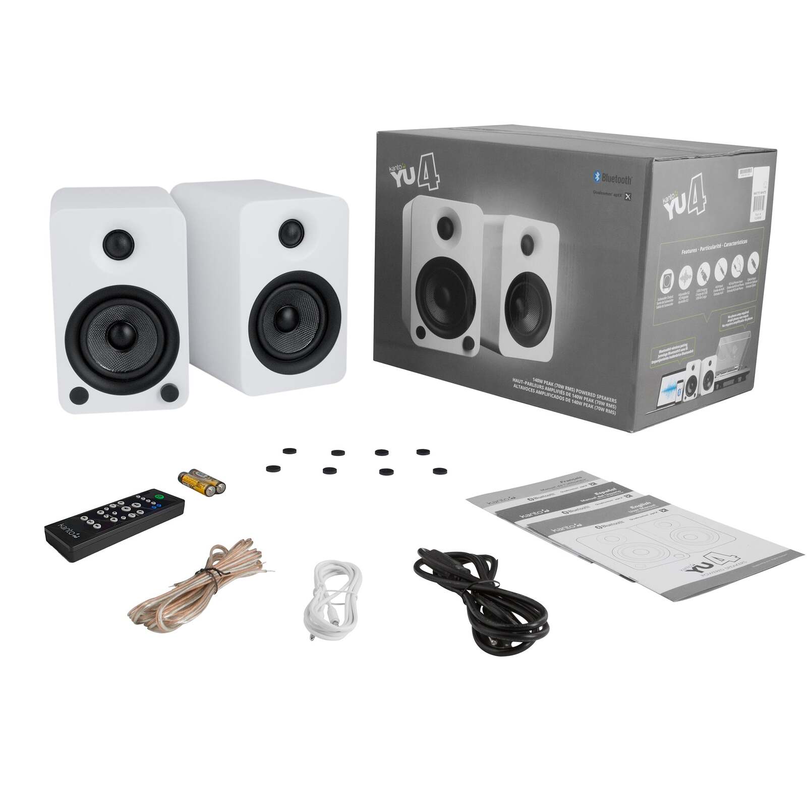Kanto YU4 140W Powered Bookshelf Speakers with Bluetooth® and Phono Preamp - Pair, Matte White - Music is made to be shared. Whether you’re hanging out with friends or kicking it solo, YU4 ensures you’re always in good company. Producing 140W peak power, its Class D amplifier effortlessly fills your room with rich, spacious sound. Carefully designed 4” Kevlar® drivers and 1” silk dome tweeters faithfully reproduce your favourite tunes, letting you enjoy them to their fullest. Packed with connectivity, YU4 makes it easy to throw on your latest vinyl with a built-in phono preamp, or sit back and stream your carefully curated playlist via Bluetooth. Crystal-clear, detailed sound for all to enjoy.