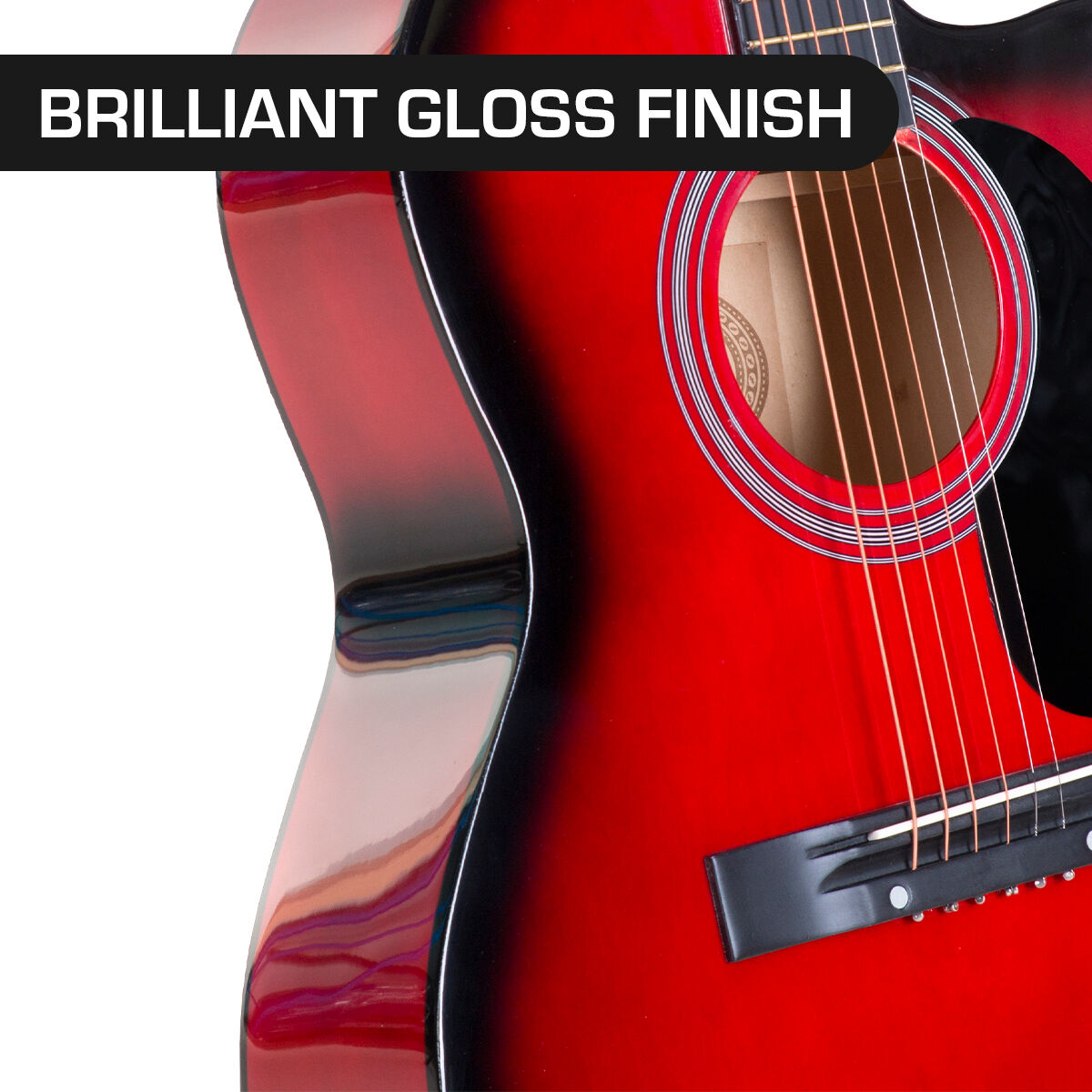 You won't need anything else with the guitar body crafted from all-natural wood. The fine construction ensures a rich, full-bodied sound as you play or practice on the guitar. And with its high-gloss finish, this guitar will turn heads whether it's displayed in your living room or slung around your shoulder.