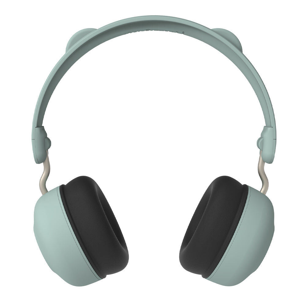 Kreafunk Kids Buzz Junior Bluetooth Headphones - Dusty Green - Buzz Junior Safe Audio Headphones.Where Fun Meets Function Safely.Delightfully designed with playful bear ears, Buzz Junior headphones are sure to be loved by little listeners everywhere. But there's more to these than their charming looks they're thoughtfully crafted to provide young children with a safe, comfortable, and joyful audio experience.The ultra-soft ear cushions feel like fluffy marshmallows, offering a snug and cozy fit, perfect for long listening sessions at home, during car rides, or on adventurous family getaways.Built with your child's well-being in mind, these headphones feature a volume cap of 79dB to protect developing ears without compromising on sound quality. Crafted from 100% recycled GRS-certified plastic and recycled vegan leather, they reflect our commitment to sustainability because happy kids deserve a healthy planet.
