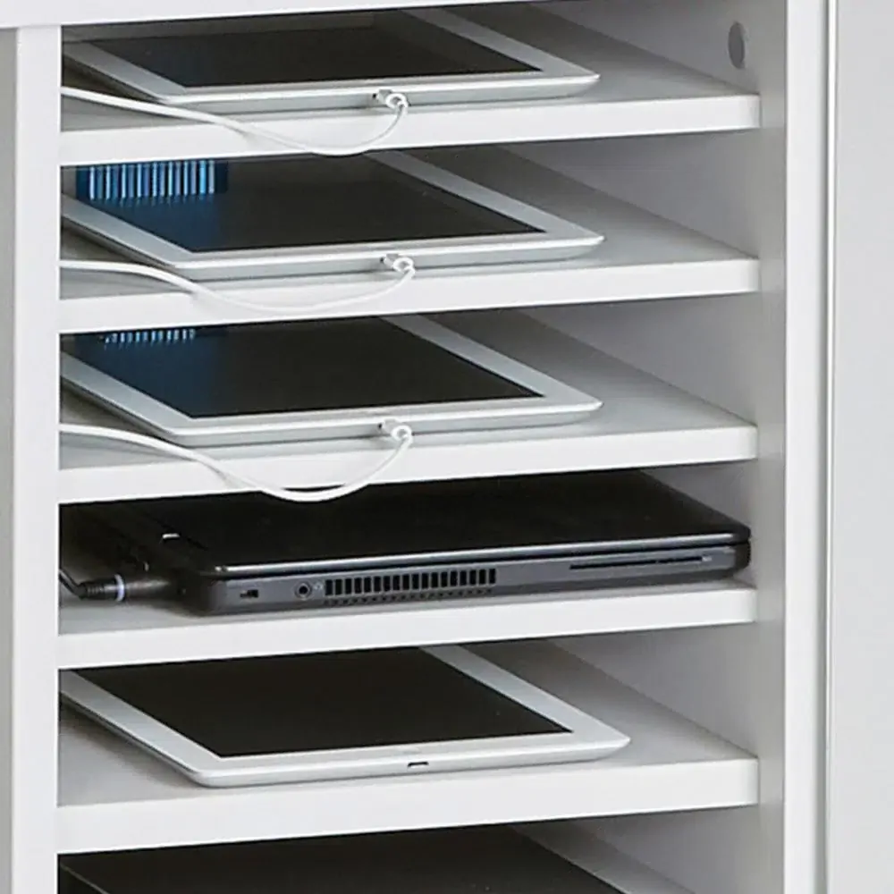 LapCabby Lyte 10 Single Door | 10-Device Static AC Charging Cabinet for Laptops, Tablets & Chromebooks up to 16 - Horizontal.The Lyte 10 Single Door Charges 10 devices up to 16 screen size - Chromebooks, laptops and tablets (including protective cases), POS devices, tooling and other chargeable equipment. It features individual shelf compartments to store devices horizontally within a compact footprint.The LapCabby Lyte Mobile offers fast charging and ensures devices are ready to go when you need them. It offers silent charging with a unique ventilation system and no noisy fan. Maximum security & safety is guaranteed with a lock that includes a 7-pin activation system and separate lockable power compartment. It's built to last; with high density materials, components and construction.