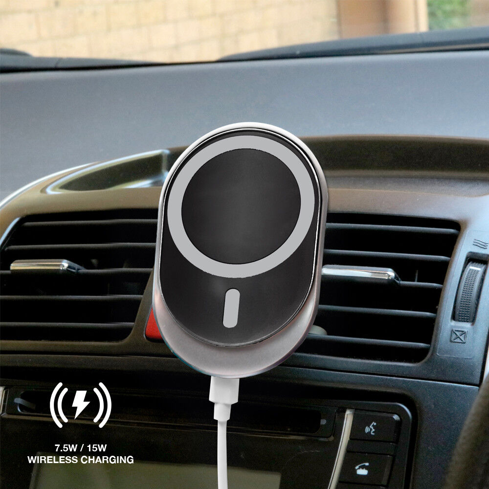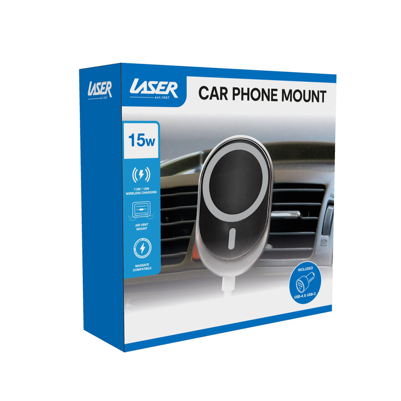 Charge your iPhone or compatible smartphone effortlessly while on the road with the Laser 15W Car Phone Mount. Designed with MagSafe compatibility and fast wireless charging, this mount ensures secure, reliable charging while keeping your device accessible.