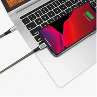 It provides a data transfer rate of 40Gbps (2X faster than USB 3.2) when connected to a portable external hard drive. This durable USB-C cable supports resolutions of up to two 4K USB-C-enabled monitors or a single 8K monitor while delivering power simultaneously (up to 240W).