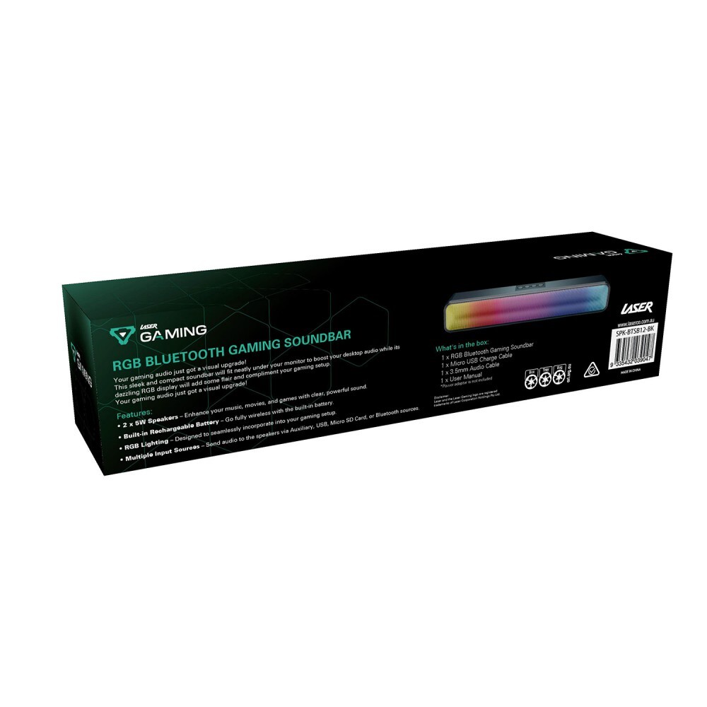 Whether you're a gamer looking to enhance your setup or simply need a portable sound solution, the Laser RGB Bluetooth Gaming Soundbar offers everything you need for an immersive audio experience.