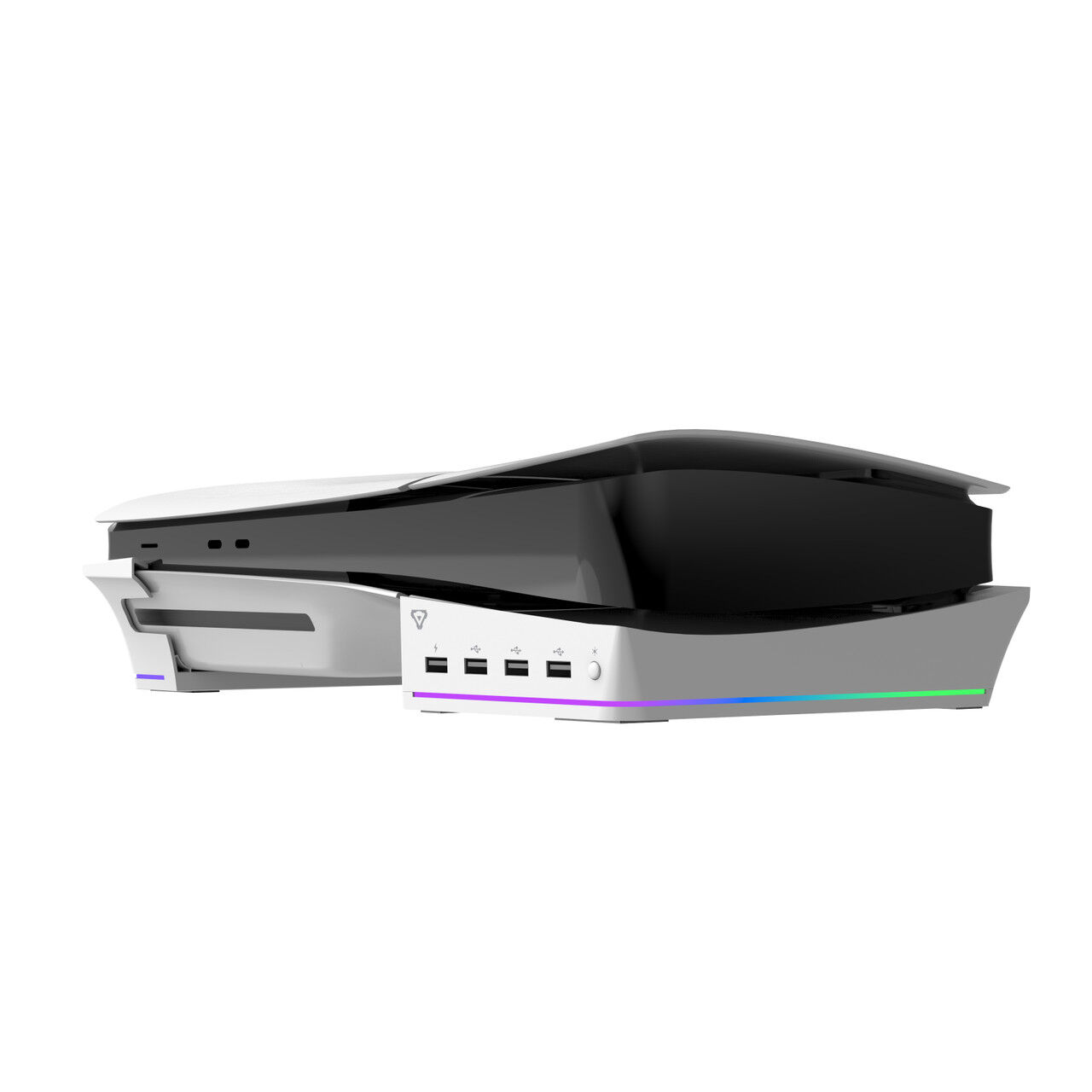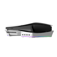 Our horizontal stand keeps the PS5 slim steady whilst offering multiple USB outlets (for controllers, Hard drives or other USB devices), all while setting the mood with the background lighting.
