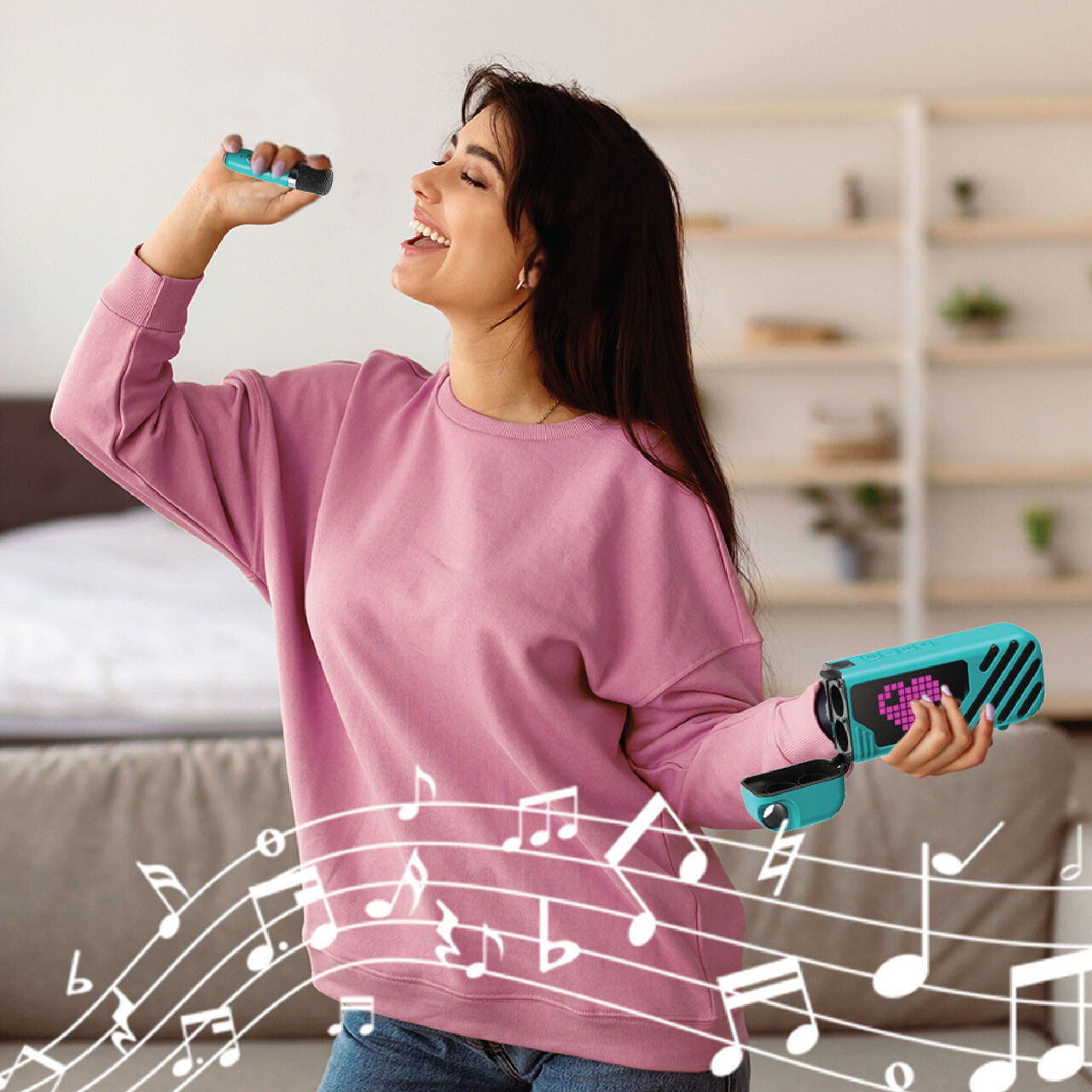The vibrant LED display brings energy to your performance, syncing with every beat to make you feel like a star. With karaoke mode and dual wireless microphones, your vocals are amplified with clarityideal for duets, group performances, or solo spotlights.