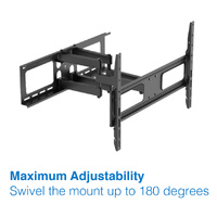 • Maximum Adjustability Swivel the mount up to 180 degrees. With a maximum swivel range of 180 degrees on a horizontal plane and a tilt function of up to 30 degrees, you are free to mount the TV in almost any location, then adjust the mount to point it to your ideal viewing location. Adjustment is smooth and effortless so any changes in seating positions can be easily accommodated with a simple push or pull of the mounted display.