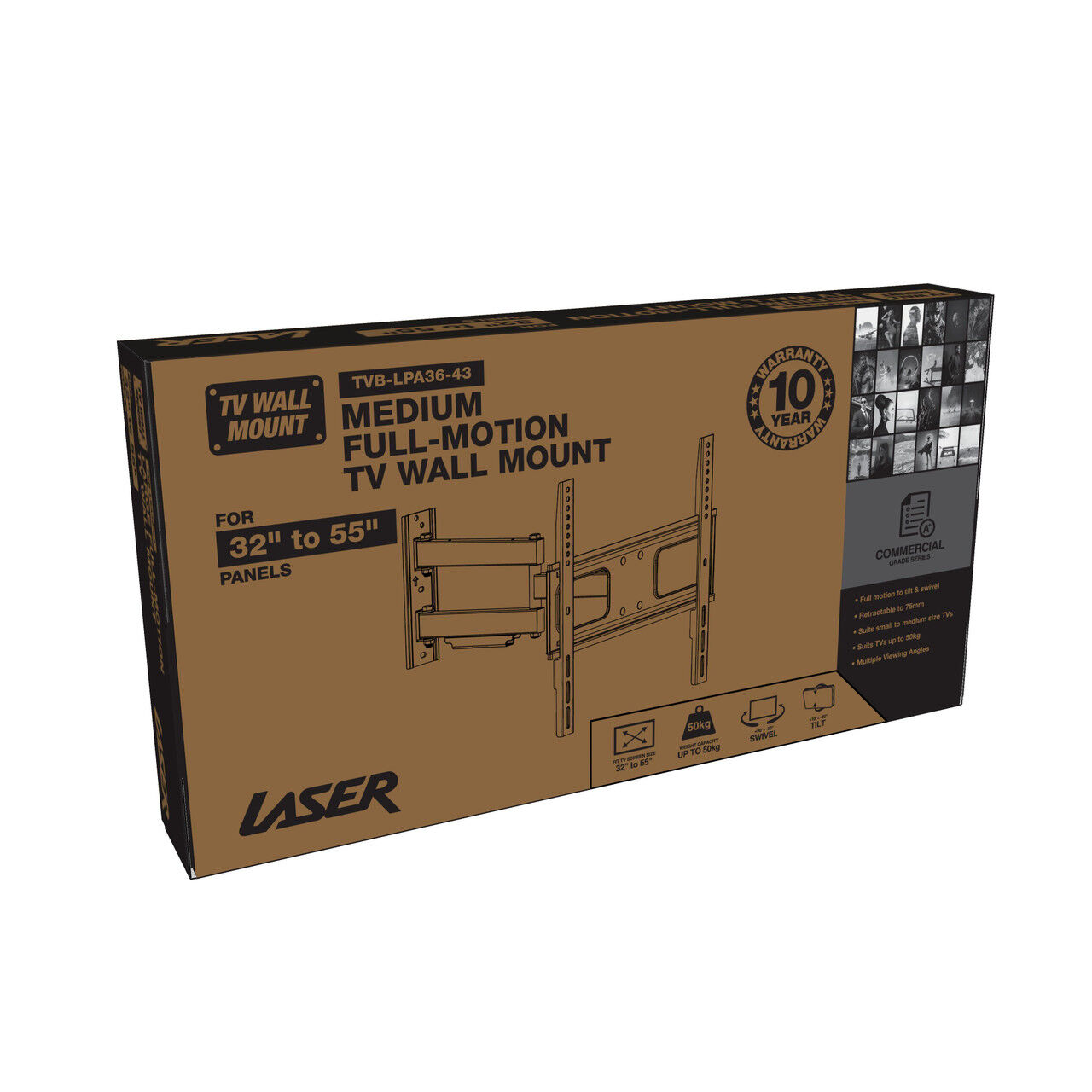 Built strong enough for commercial applications, the Laser Medium Full-Motion TV Wall Mount provides maximum strength and quality for your next mounting solution.