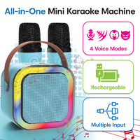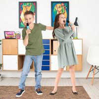 Featuring two microphones and four fun voice effects: Original, Echo, Monster, and Baby Voicethis Bluetooth karaoke machine is perfect for duets and lively dance-offs.