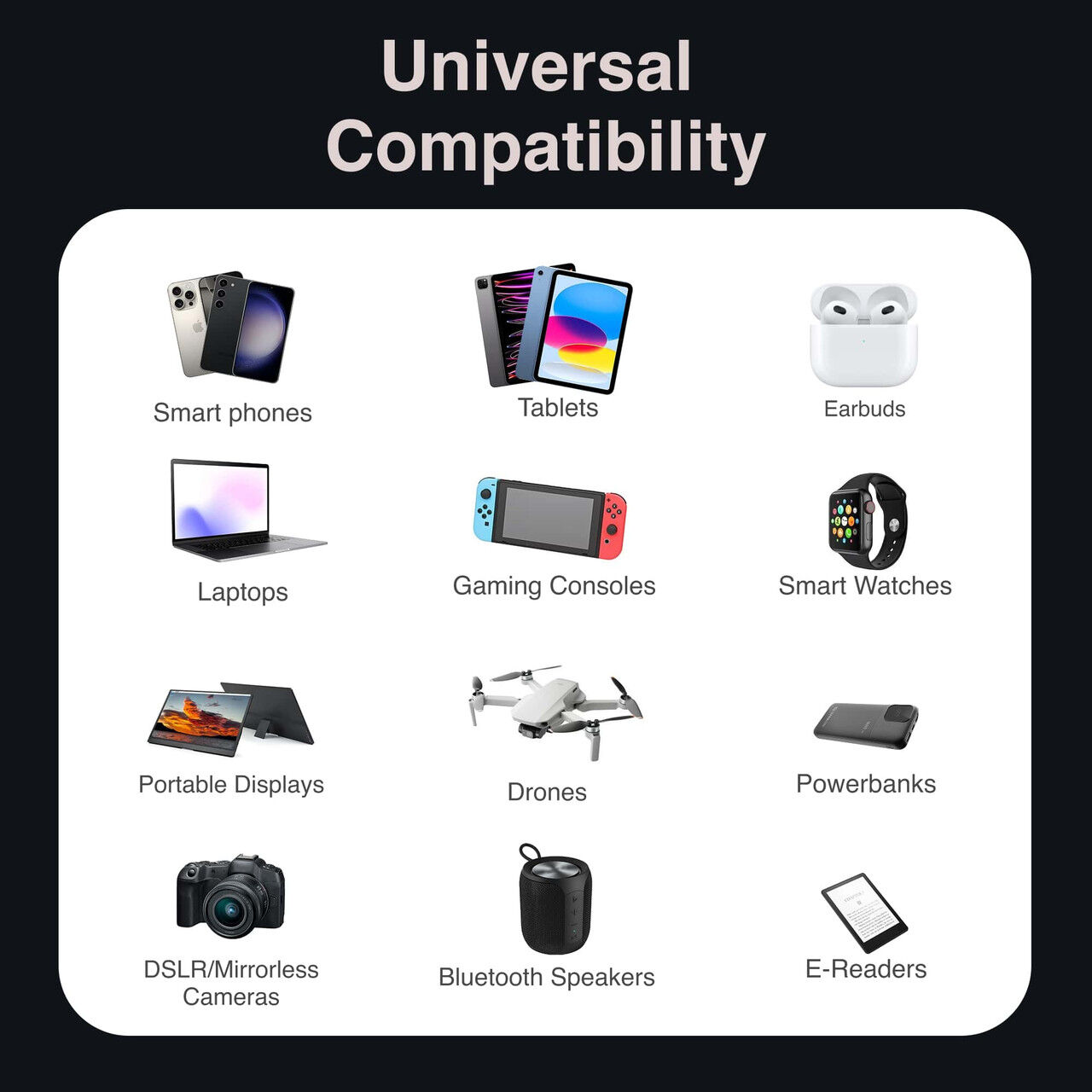 - Universal Compatibility Works seamlessly with MacBooks, iPhones, iPads, Samsung Galaxy devices, gaming consoles, and other USB-powered gadgets, making it a versatile choice for work, travel, and home use.