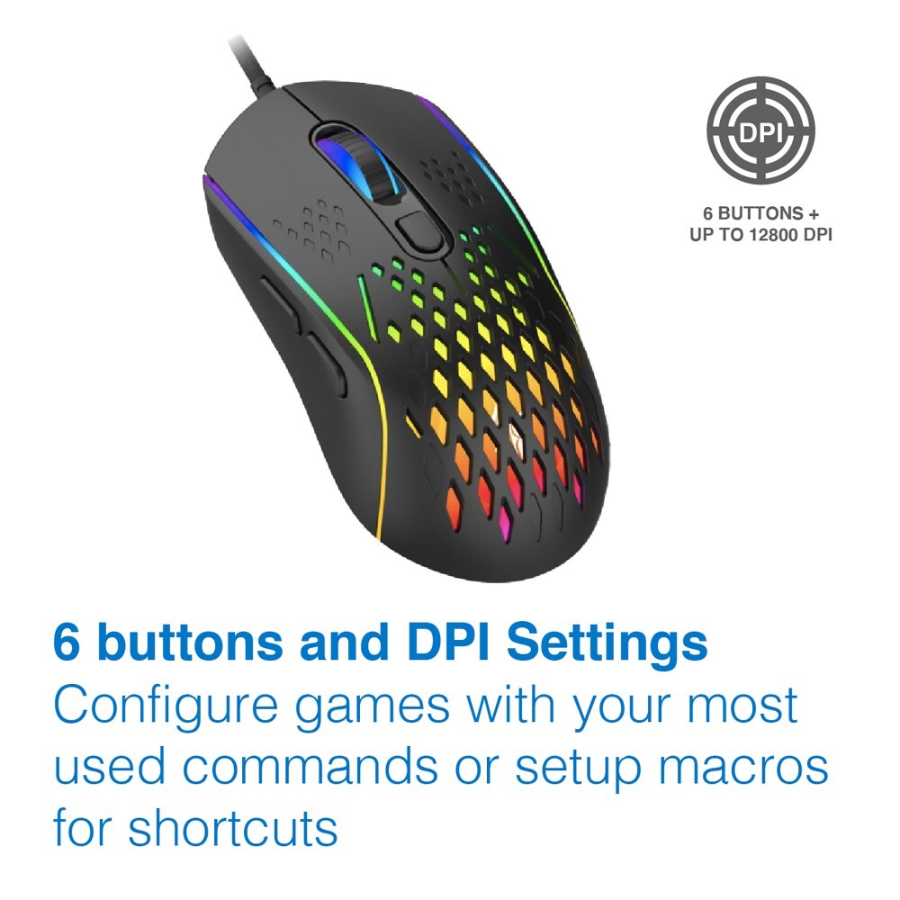 With 13 different lighting modes, 6 individual buttons and DPI settings for easy navigation.