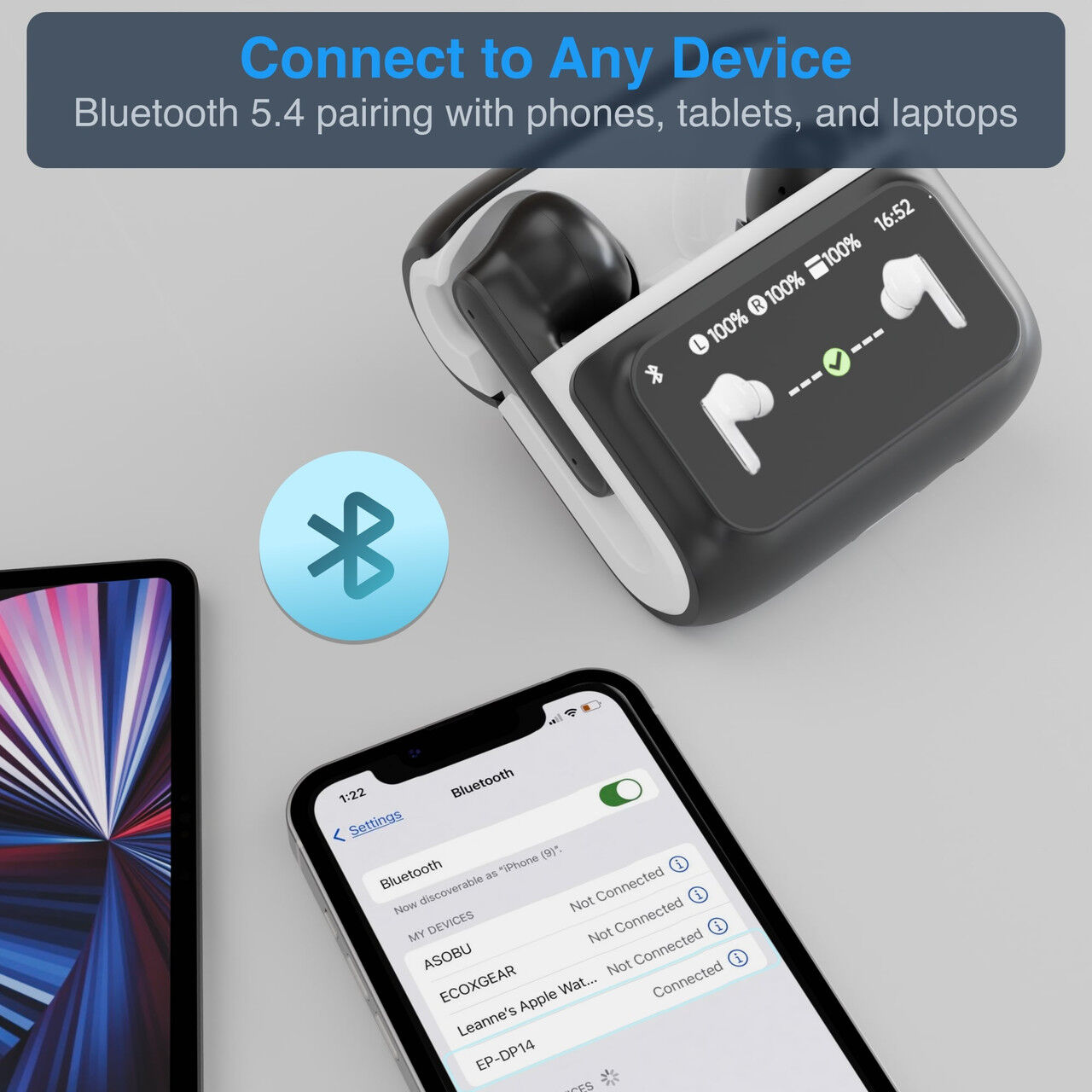 Upgrade your listening experience with the Laser ANC ENC Earbuds featuring an intuitive touchscreen display and premium audio technology.
