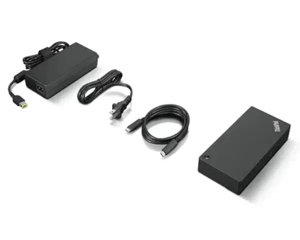 • What is in the box: ThinkPad Universal USB-C Dock; 90 W AC Power adapter; Power cord; Pubs; Cable