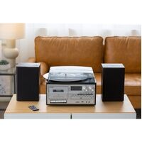 When it's time to sit back and simply enjoy your tunes, enjoy the choice of Wireless Streaming, aux-in, USB, SD/MMC, CD, cassette tape, 3-speed turntable with an included 45RPM adapter, and AM/FM radio playback so you can experience your collection from A-Z, any way you prefer it. Enjoy the convenient remote control for Wireless Streaming, CD, AM/FM radio, USB and SD/MMC playback modes, as you enjoy the nostalgia of your favourite music.
