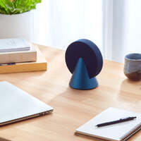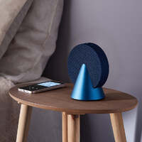 Lexon Conic 360 Bluetooth Speaker - Blue - This 360° Bluetooth speaker delivers immersive sound with its advanced audio configuration, featuring two active drivers and one passive driver. It includes buttons for easy audio controls and volume adjustment. For an enhanced stereo experience, the speaker is TWS compatible. With a battery life of up to 12 hours, it can be conveniently recharged via the included USB-C cable, with a full charging time of 4 hours. The speaker is made from high-quality aluminum, fabric, and ABS materials, combining durability with a stylish design.