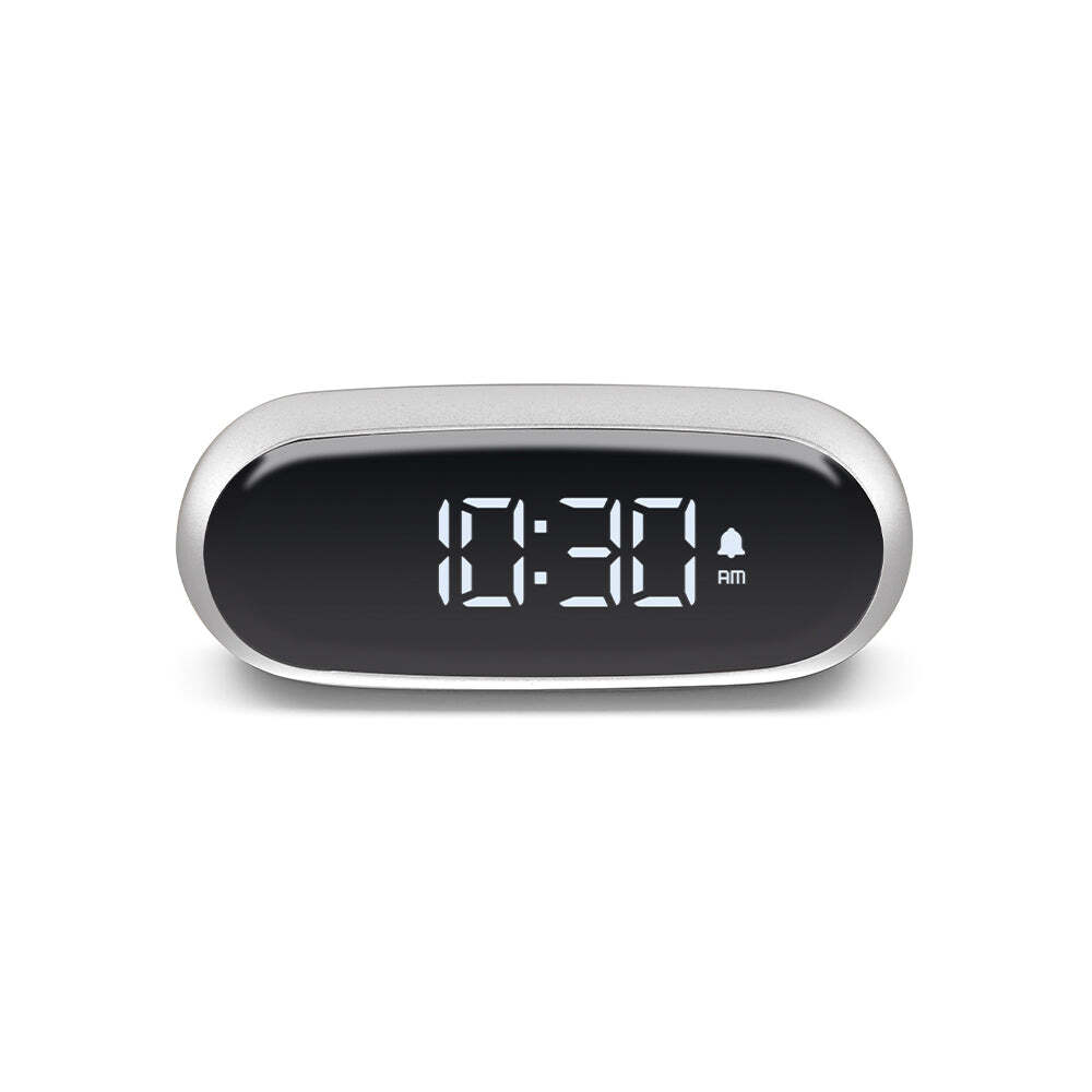 Lexon Minut Mini Alarm Clock - Alu Polish - Minut is a stylish and tiny alarm clock that fits in the palm of your hand. Its ultra compact size makes it easy to fit right on a nightstand and pack for travel. Featuring easy-to-use touch controls to light up the screen and trigger the snooze function, Minut gives you some extra shut-eye when needed. Equipped with pure VA LCD display, Minut allows you to check the time clearly at any position in the room. Crafted in a sleek aluminum finish, this cute little alarm clock is the perfect accessory to upgrade your bedroom decor. Offering up to 6 months of battery life, Minut is rechargeable via USB-c using the supplied cable.