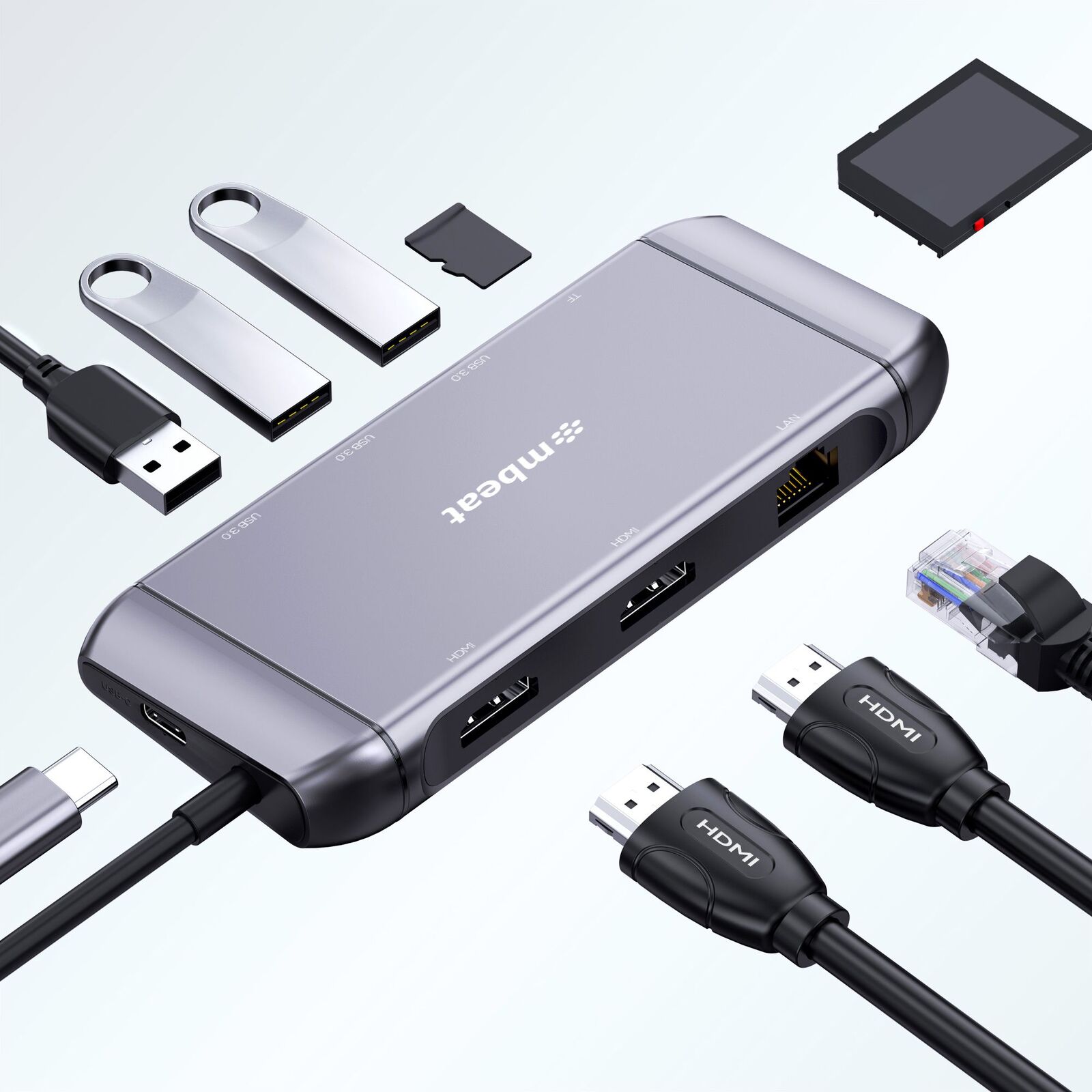 mbeat® Elite X11 Dual Display HDMI USB-C Multifunction Docking Station - 2x 4K HDMI, 1xUSB-C Power Delivery 100W, 3xUSB 3.0, MicroSD/SD Card, 1x RJ45