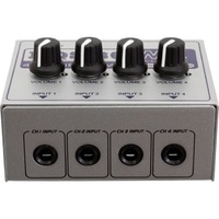 • This unit is a four channel passive mixer for expanding a console mixer, mixing microphones, instruments, stereo to mono, etc.