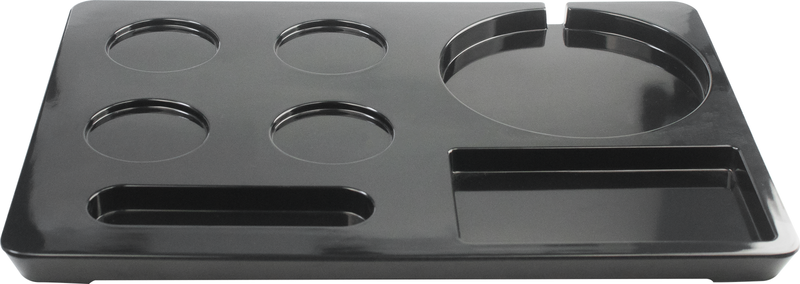 Introducing the convenient Melamine Tray, designed with functionality in mind. It features an integrated space for the kettle base, indentations for sachets and spoons, and room for 2 bottles of water and 2 mugs. Made from water and burn-resistant material, this easy-to-clean tray is perfect for serving guests or enhancing any hotel room.