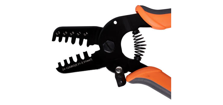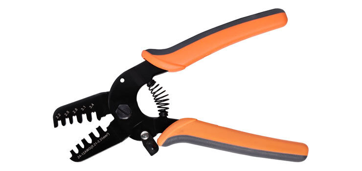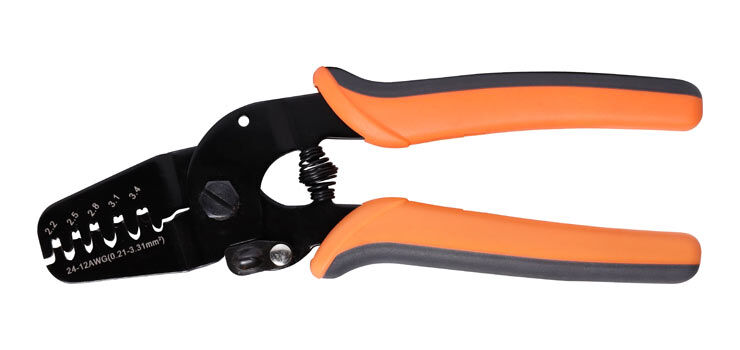 This open barrel terminal crimper is designed for use with 0.21-3.31mm² open barrel terminals and connectors. It features multiple jaw crimp sizes including 2.2, 2.5, 2.8, 3.1 and 3.4mm. Comfortable rubberised handles provided with spring loaded action for faster crimping. Suitable for JAM, Molex, JST and Tyco terminals and other U-barrel terminals and connectors.