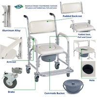 The 3 in 1 commode on wheels is a handy and durable product, having an aluminum construction with chrome coating for a waterproof and rustproof finish