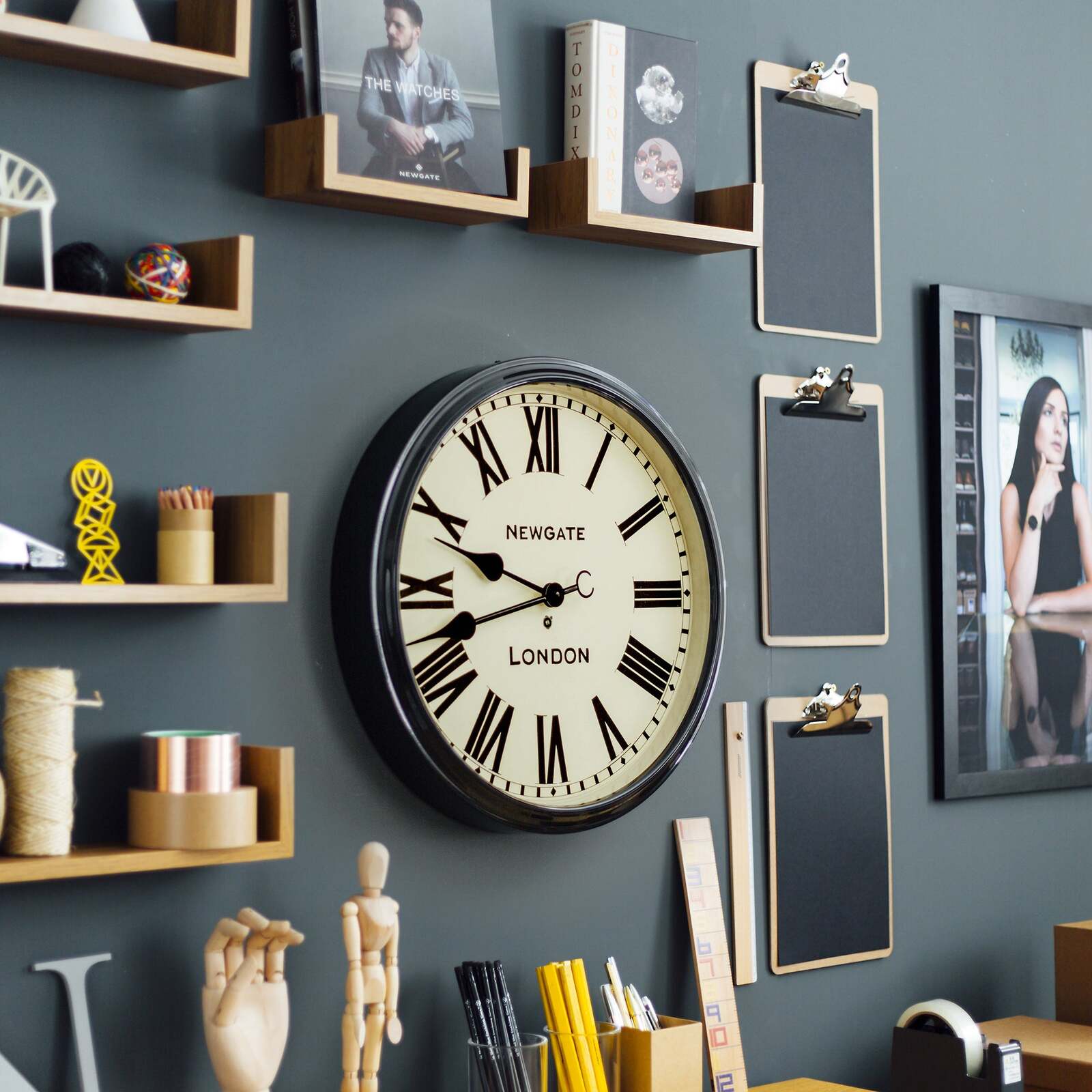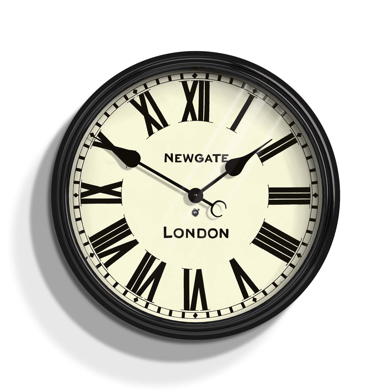 Newgate Battersby Clock Black - Black Roman Numeral Wall Clock | Classic Station ClockA large railway station wall clock with a classic Roman numeral dial and gloss black metal case.