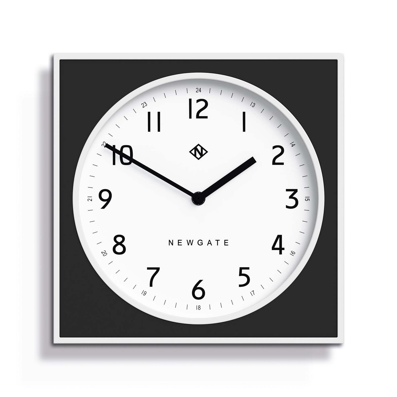 Newgate Burger & Chips Wall Clock Black Modern Wall Clock | White with a Black Panel | Square Clock.