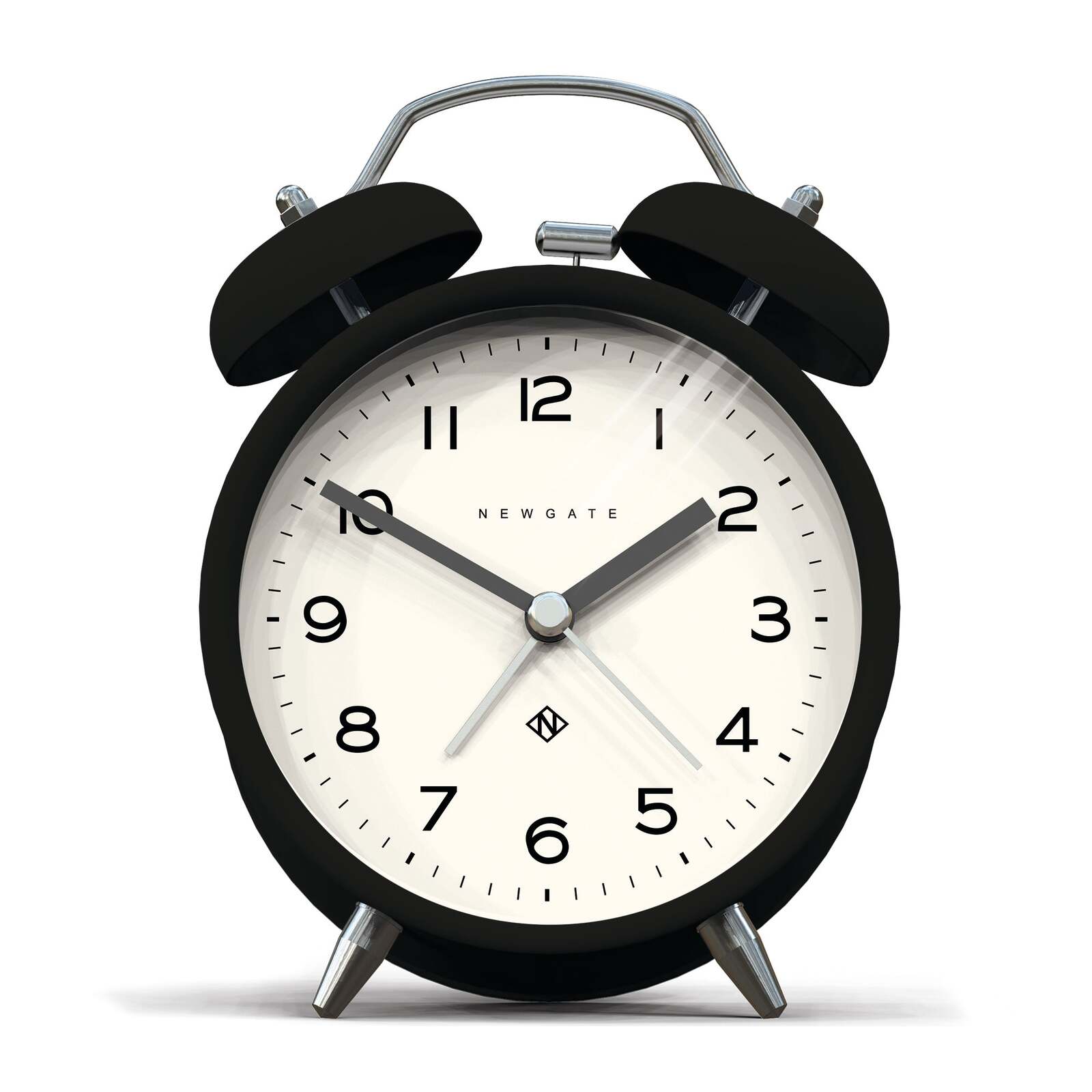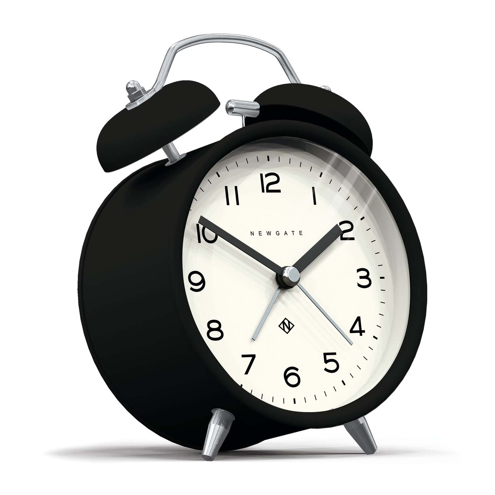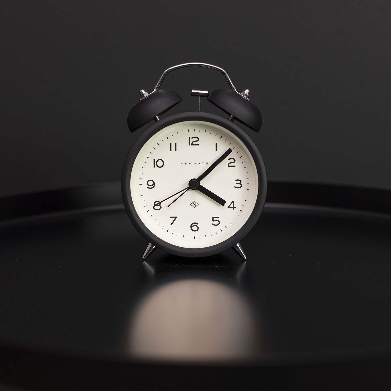 Newgate Charlie Bell Echo Matte Black A modern alarm clock with a matt black finish, contemporary graphic dial and a moving hammer and twin-bell alarm.