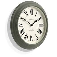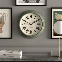 Newgate Jones Supper Club Clock Moss Green A classic green Roman numeral wall clock. The decorative moulded case is finished in matt 'Moss Green' with grey metal spade hands and a flat glass lens.