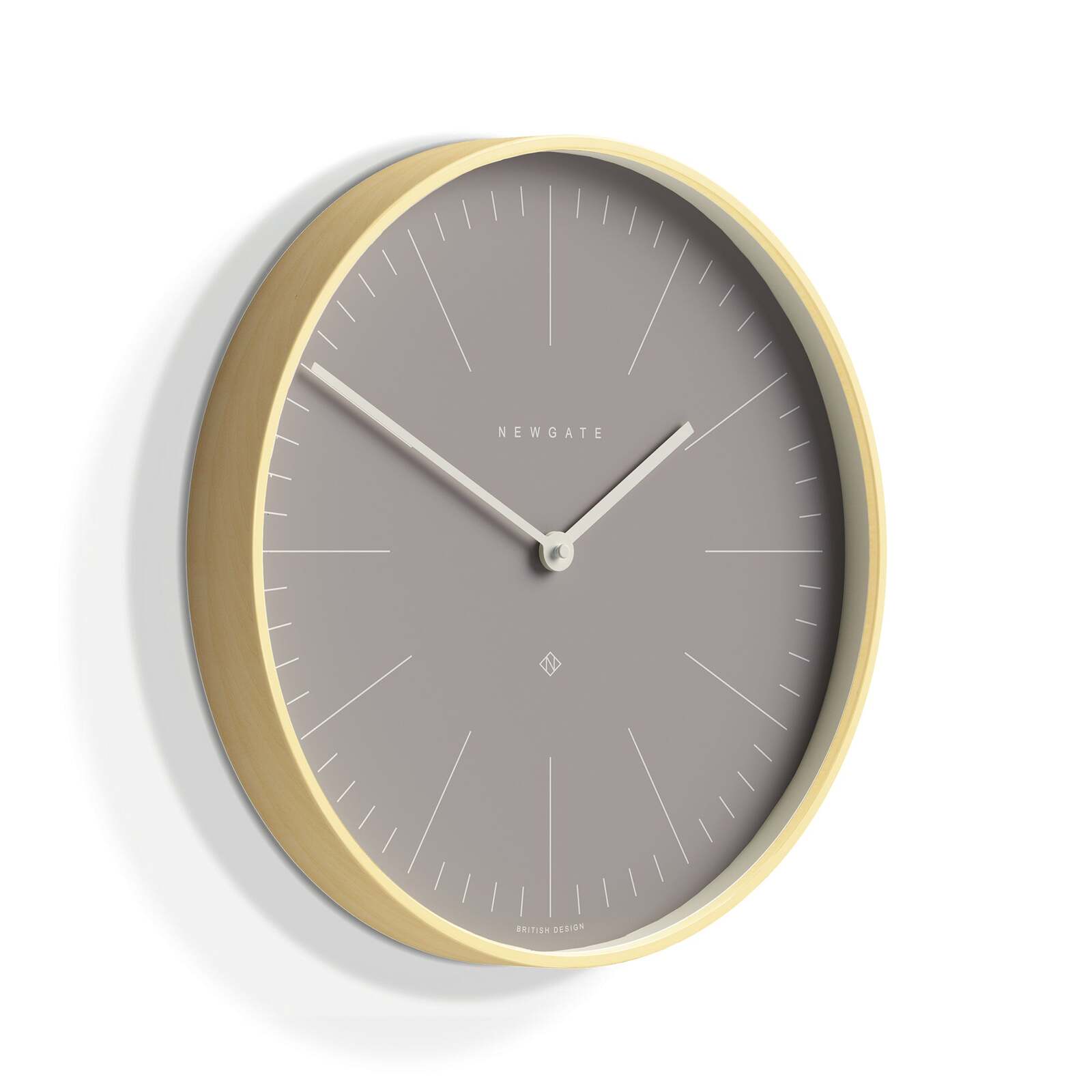 Newgate Mr Clarke Clock Pale Wood Clay Grey Dial A modern Scandinavian-inspired wall clock with a pale plywood case and a contemporary Clay Grey face with a minimalist marker dial.