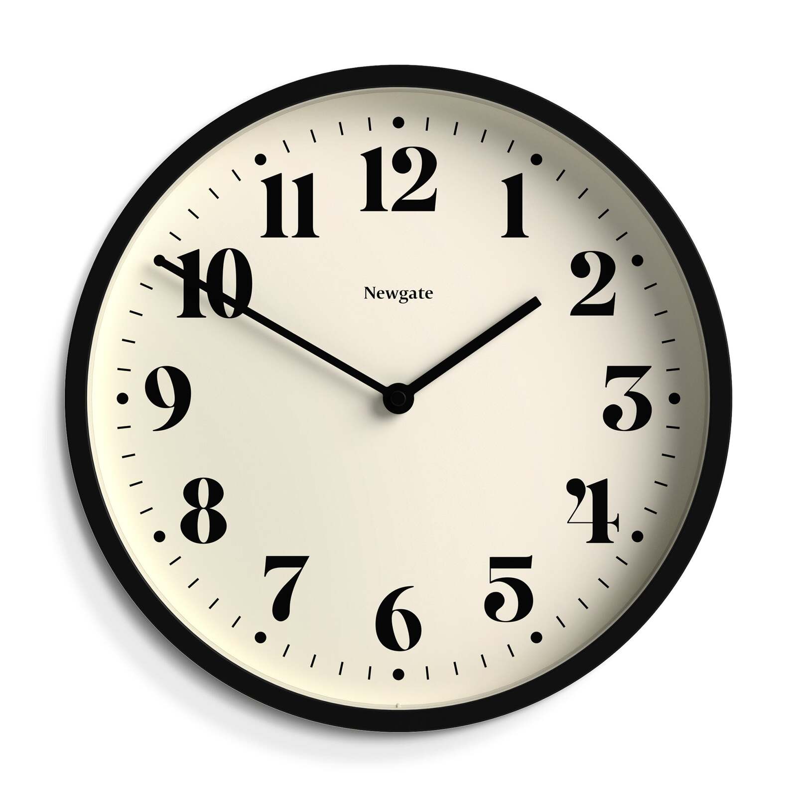 Newgate Number Four Wall Clock Matte Black A modern black wall clock with a contemporary theatre dial and matt black painted case.
