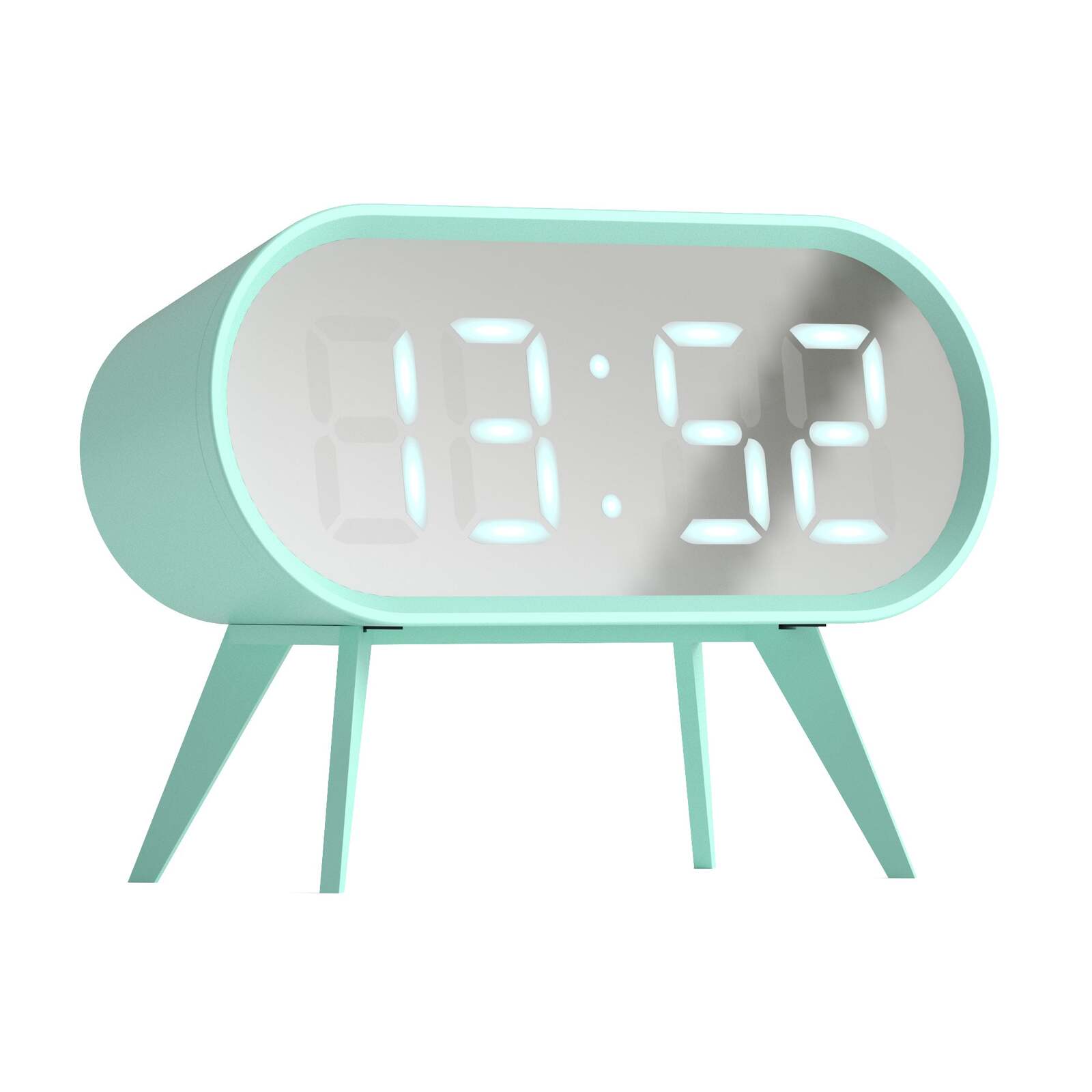 The unusual alarm clock design incorporates a 12 or 24-hour time display, a digital beep alarm, a snooze function, night mode and brightness adjustment, and an optional temperature display.