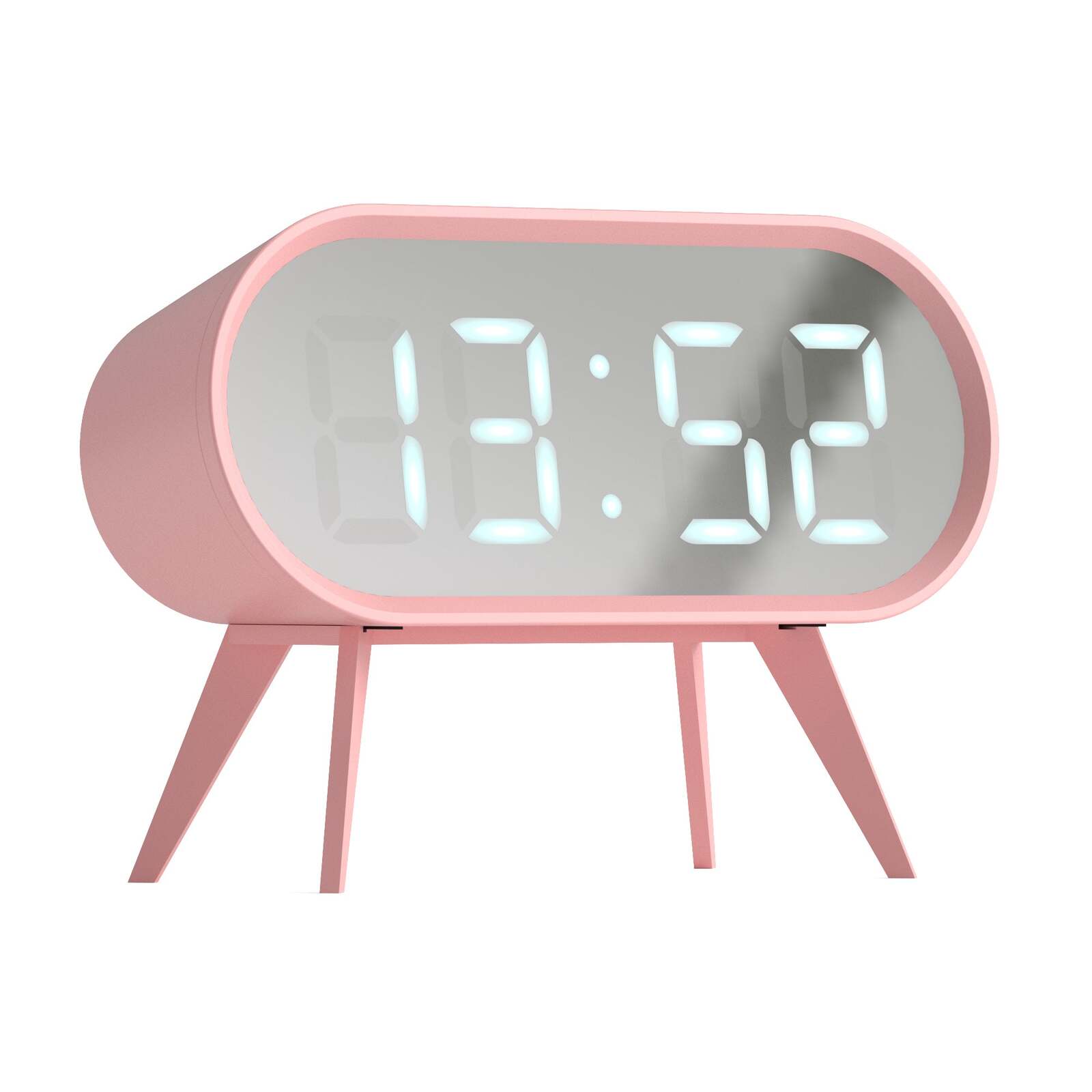 The unusual alarm clock design incorporates a 12 or 24-hour time display, a digital beep alarm, a snooze function, night mode and brightness adjustment, and an optional temperature display.
