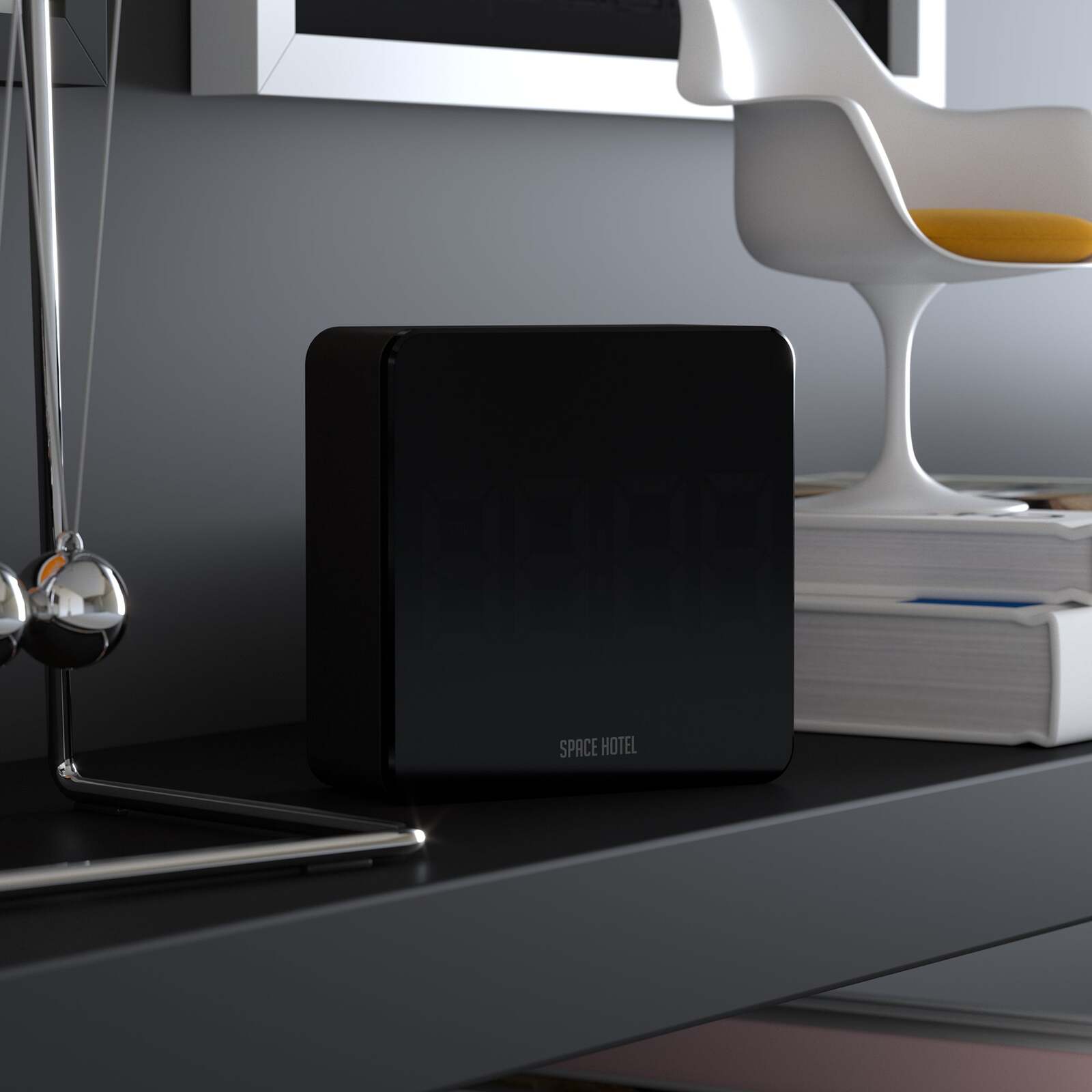 Newgate Space Hotel Orbatron Alarm Clock Black Case, Black Lens, Green Led The Orbatron is a small LED alarm clock in silver, or all-black colourway choices.