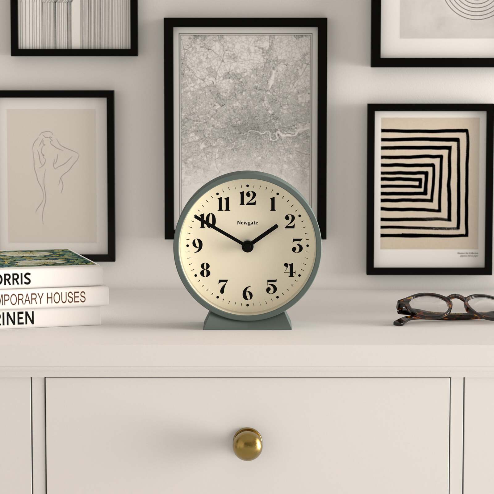 The Theatre Mantel Clock is a contemporary 'Asparagus' Green Mantel or desk clock with a minimalist dial.
