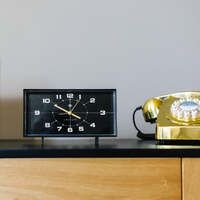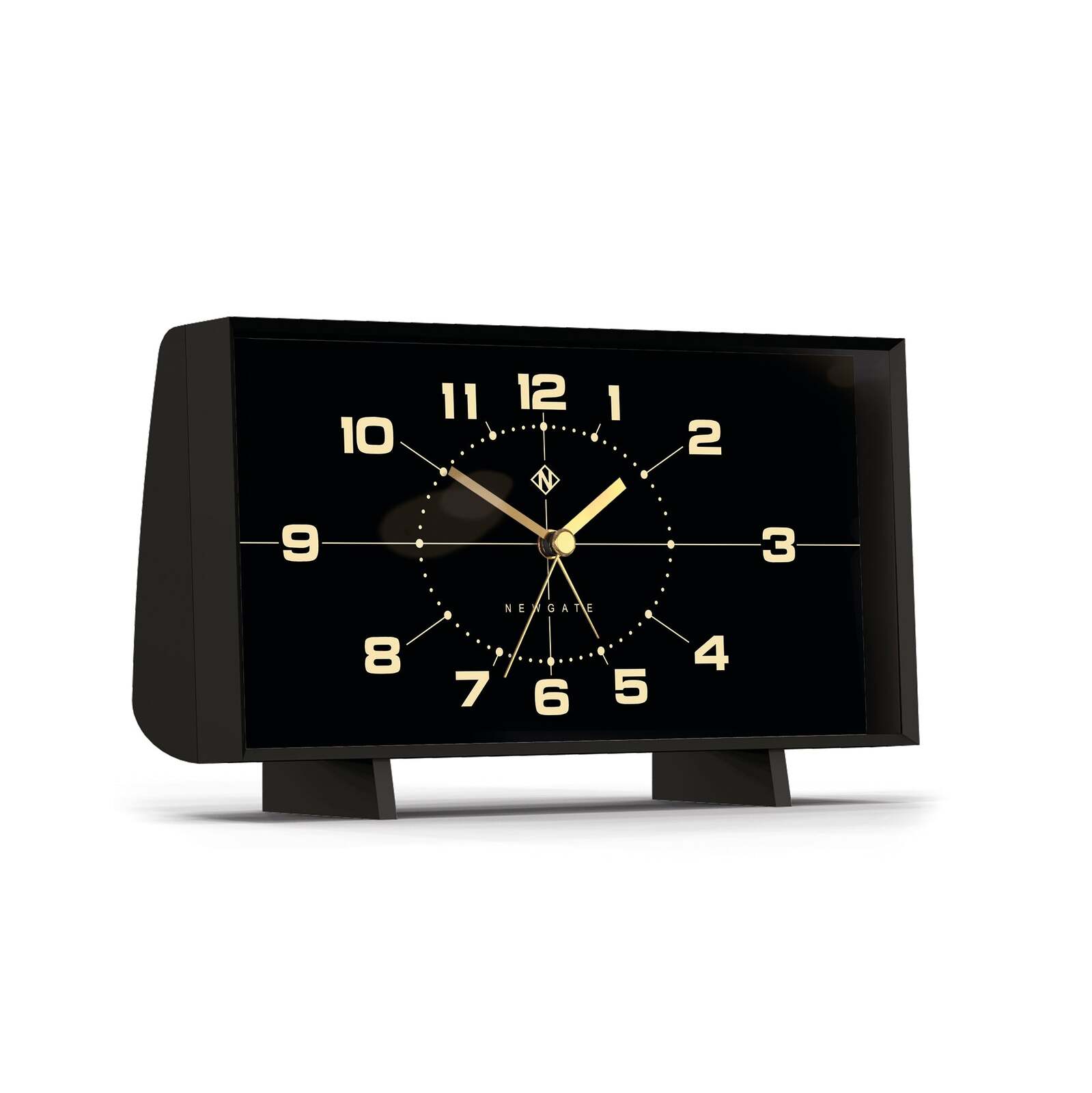 Newgate Wideboy Alarm Black, Reverse Dial A large retro-inspired alarm clock with a matt black case and a bold black mid-Century atomic dial.