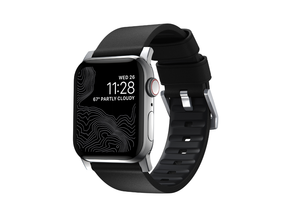 DESCRIPTION:Built with an advanced hybrid construction of waterproof leather and FKM rubber Active Band Pro is our most versatile band. We combined the subtle outline of a modern leather band with a high performance FKM lining and ventilation channels to create a band as functional as it is stylish. Active Band Pro is ready for anything from a morning surf to a night on the town.|FEATURES:- Classic Black waterproof Heinen leather from Germany - 100% waterproof - FKM fluoroelastomer rubber lining - Interior ventilation channels - Custom stainless steel lugs and buckle - Designed for Apple Watch Ultra Series 8 7 6 SE and all previous versions of Apple Watch|