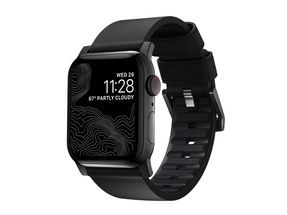 DESCRIPTION:Built with an advanced hybrid construction of waterproof leather and FKM rubber Active Band Pro is our most versatile band. We combined the subtle outline of a modern leather band with a high performance FKM lining and ventilation channels to create a band as functional as it is stylish. Active Band Pro is ready for anything from a morning surf to a night on the town.|FEATURES:- Classic Black waterproof Heinen leather from Germany - 100% waterproof - FKM fluoroelastomer rubber lining - Interior ventilation channels - Custom stainless steel lugs and buckle - Designed for Apple Watch Ultra Series 8 7 6 SE and all previous versions of Apple Watch|