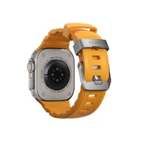 Overview:Introducing the Nomad Rocky Point Watch Band the perfect companion for your Apple Watch. Engineered for rugged activities—cycling gym workouts or daily challenges—this band is crafted from ultra-durable FKM fluoroelastomer rubber and lightweight titanium combining toughness with sleek design. Unmatched Durability Made from compression-moulded FKM rubber the Rocky Point band is 100% waterproof and built for demanding environments. Ventilation grooves ensure all-day comfort during intense activities. Precision Engineering With grade 2 titanium hardware the band is built to last while remaining lightweight. Titanium components secure any excess band providing a snug fit that stays in place allowing you to focus on your performance. Perfect Fit for Apple Watch Ultra Designed for the Apple Watch Ultra and Ultra 2 this band integrates seamlessly with your device enhancing functionality and style. Its one-size-fits-most design ensures adaptability for any adventure.|Features:Take on your next challenge with a band designed to handle every adventure Ultimate comfort with ventilation grooves that keep your wrist cool Experience seamless integration with your Apple Watch Ultra for a sleek modern look Lightweight titanium hardware protects your band & shields against wear and tear Dive into any activity - rain or shine - with a 100% waterproof band that’s ready for anything Enjoy all-day comfort Rocky Point adapts & moulds perfectly to your wrist|