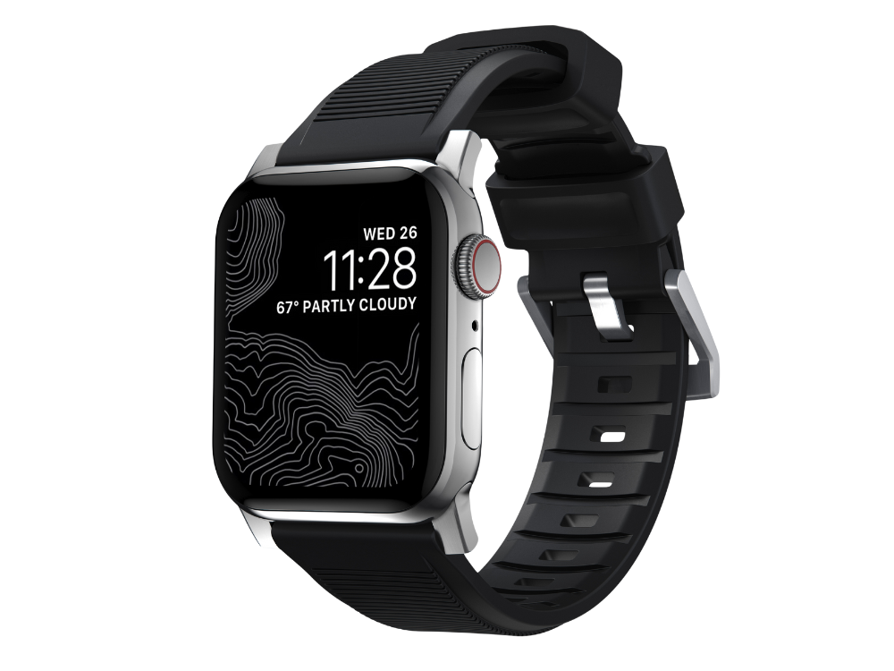 DESCRIPTION:Designed to give your Apple Watch a modern rugged look for daily wear or on your next adventure. Rugged Band is constructed from FKM a soft yet strong fluoroelastomer that combines all-day comfort with lasting durability. Custom-designed injection-molded stainless steel hardware provides a secure fit and unique style.|FEATURES:- FKM fluoroelastomer rubber - Breathable ribbed design - Fully waterproof - Custom stainless-steel lugs and buckle - Designed for Apple Watch Series 8 7 6 SE and all previous versions of Apple Watch|