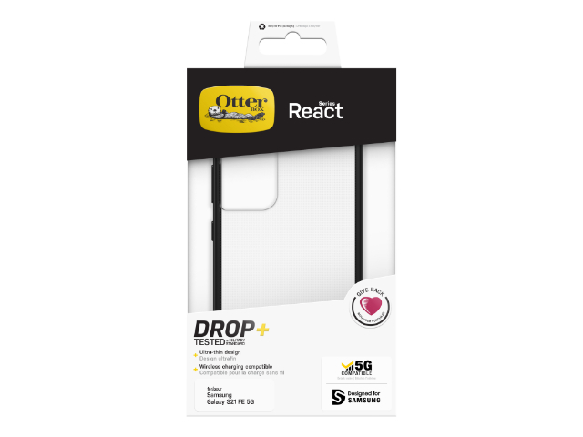 OtterBox React Samsung Galaxy S21 FE 5G (6.4') Case Black Crystal (Clear/Black) - (77-83981), Antimicrobial, DROP+ Military Standard, 7 Years Warranty
