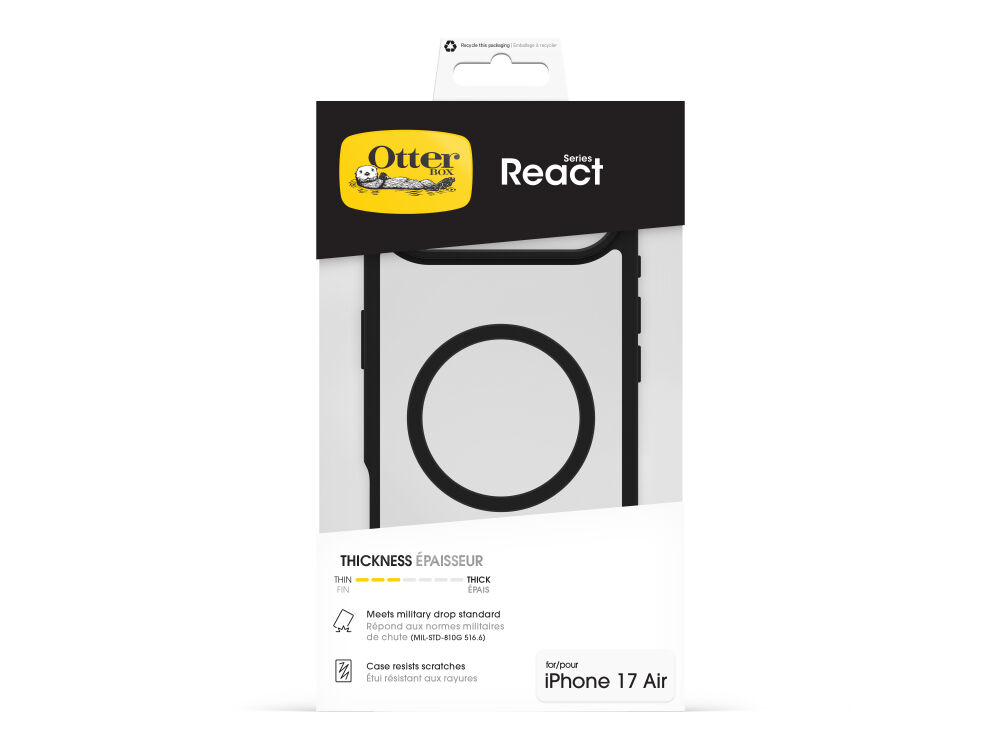 OtterBox React MagSafe Apple iPhone Air (6.5') Case Black Crystal (Clear/Black) - (77-98611), DROP+ Military Standard,Raised Edges,7 Years Warranty