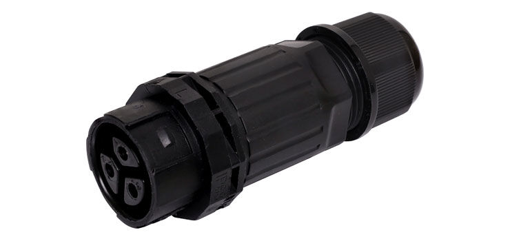 This waterproof IP68 3 pin connector features a screwless termination and locking connection to mating connectors (see P8650 for male line plug). This makes it a ideal for applications that are often disconnected and reconnected, but is also suitable for static installation. It features a high level of moisture and dust resistance at IP68 with flame retardant plastics.